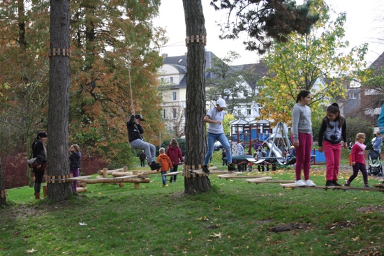 „Mit dem Niedrigseilgarten hat die Stadt die Wünsche der Bürger umgesetzt“, sagt Bürgermeister Christoph Tesche. „Mit ihm ist ein naturnaher Spielbereich entstanden, der sich gut in die Parkeinlage einfügt. Dabei wird der Baumbestand behutsam genutzt.“