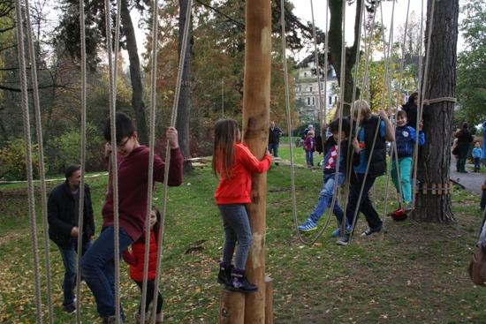 Der neue Niedrigseilgarten bietet natürlich Angebote für Kinder, aber auch für alle anderen Altersgruppen und schafft somit ein generationsübergreifend attraktives Freizeitangebot für alle Nutzer der Grünanlage. Neben einer Brücke und jeder Menge Seilen zum Klettern und Balancieren gibt es auch Schwingstationen. So können Geschicklichkeit, Konzentration, Körperspannung sowie soziale Verhaltensweisen gefördert werden.