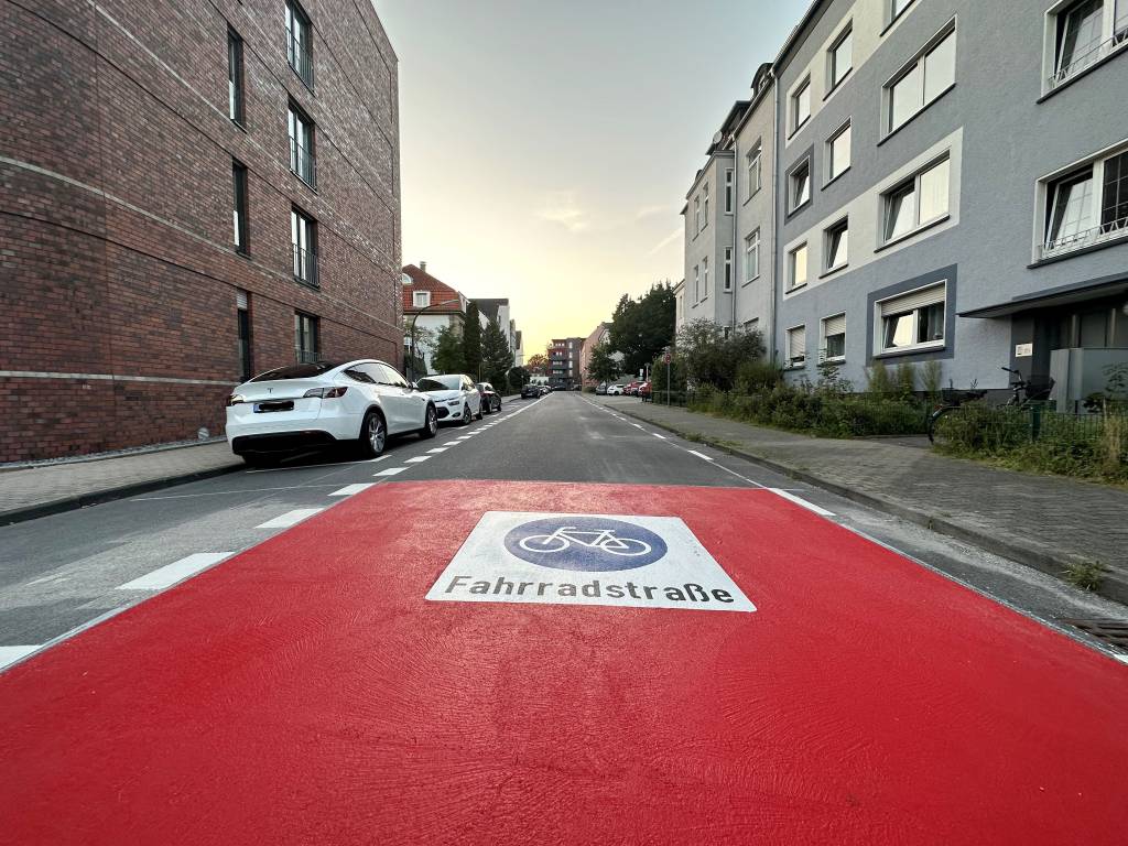 Pressefoto: So wie hier an der Görresstraße soll sich auch an den anderen Fahrradstraßen im Stadtgebiet das Erscheinungsbild ändern. Foto: Stadt RE