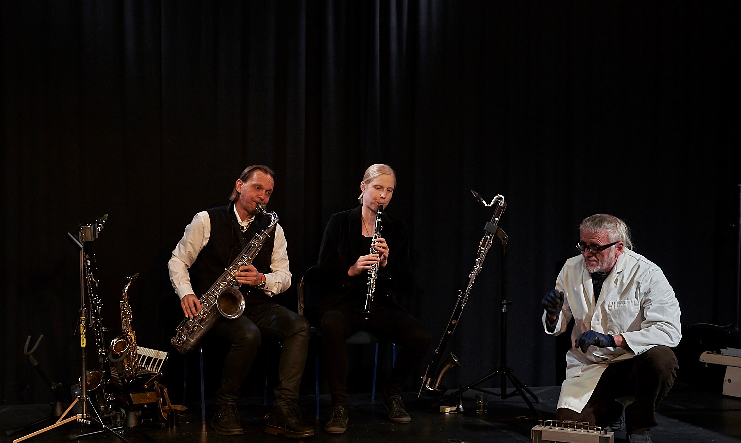 Zu sehen und zu hören ist außerdem das Musiker-Duo Katharina Bohlen und Claudius Reimann. Die Besucher*innen erwartet ein mal dramatischer, mal komischer Dialog zwischen den Mitwirkenden: mit überraschenden Interventionen und verblüffenden Wendungen.